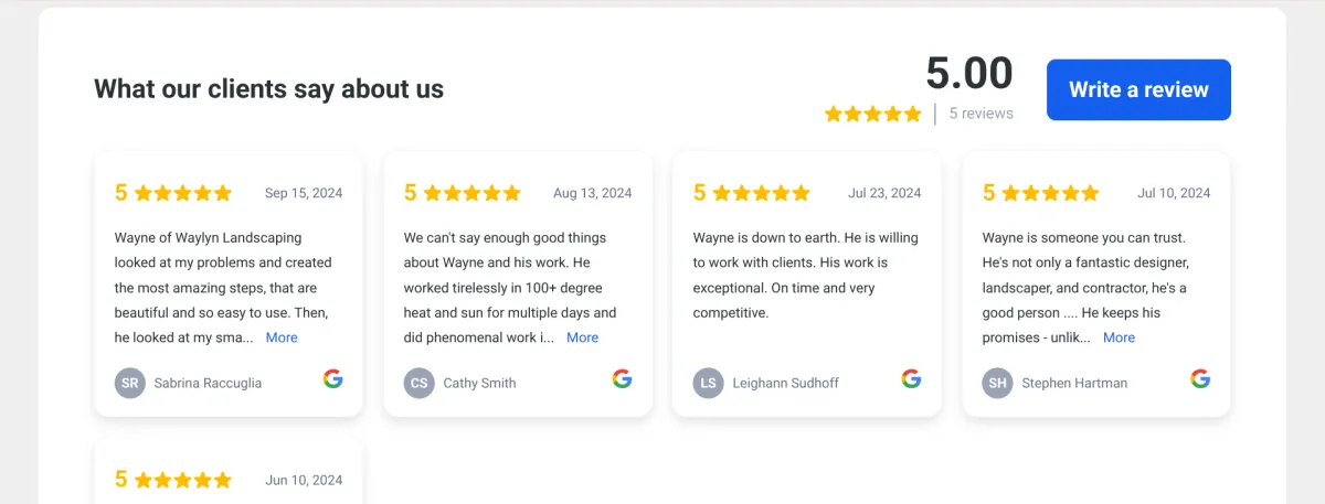 ✅ Embedded Google reviews so visitors see real feedback without leaving the page